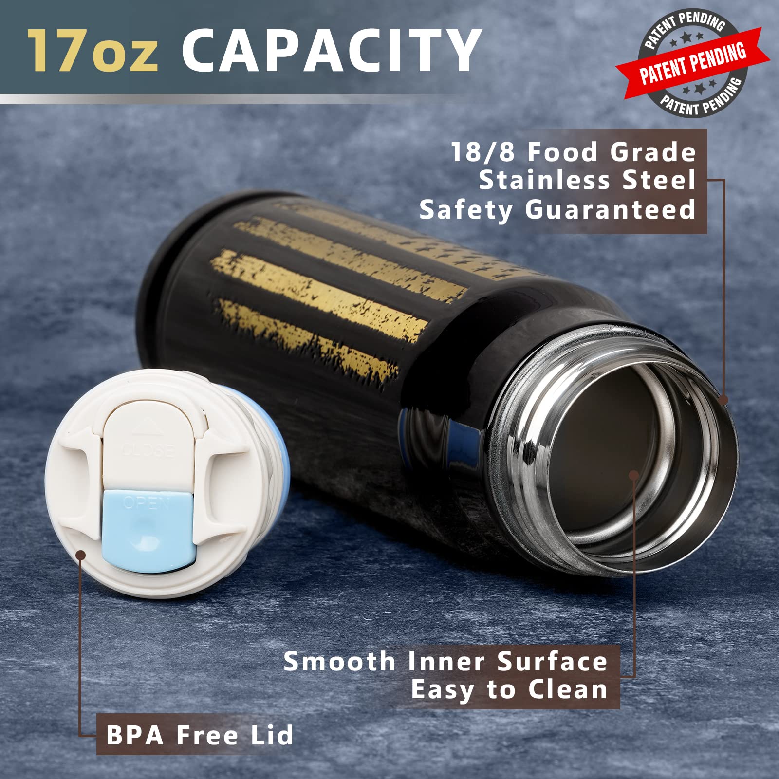 - Premium 18/8 Food Grade Stainless Steel: The bullet thermos for men is saftey guaranteed and can keep cold or hot longer and it is made from 18/8 food grade stainless steel without metalic taste. It is really nice gifts for men who have everything, it's Father's Day, Christmas, Thanksgiving, Birthdays, Valentine's Day, or an Anniversary, this stunning tumbler is the perfect gifts for your Dad, Father, or Papa, showing him how much you truly love and appreciate him