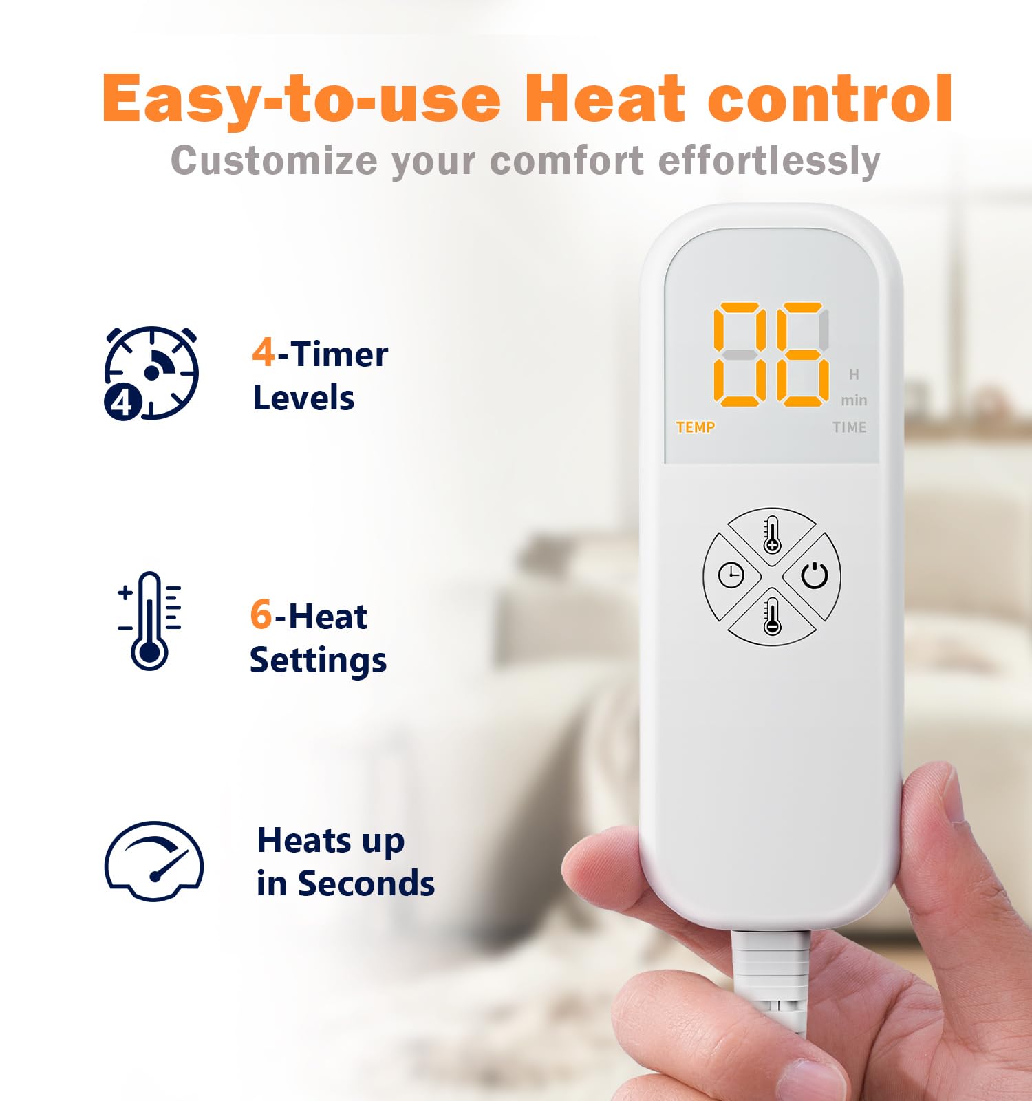 - Perfect Gift for Women: Easy-to-use LED controller, 6 heat levels (104°F–140°F), 4 timers (30, 60, 90, 120 mins), 2-hour auto-off. Enjoy personalized heat therapy stress-free. Ideal for Christmas, Valentine's, Mother's Day, Birthday, Thanksgiving, and anniversaries.
