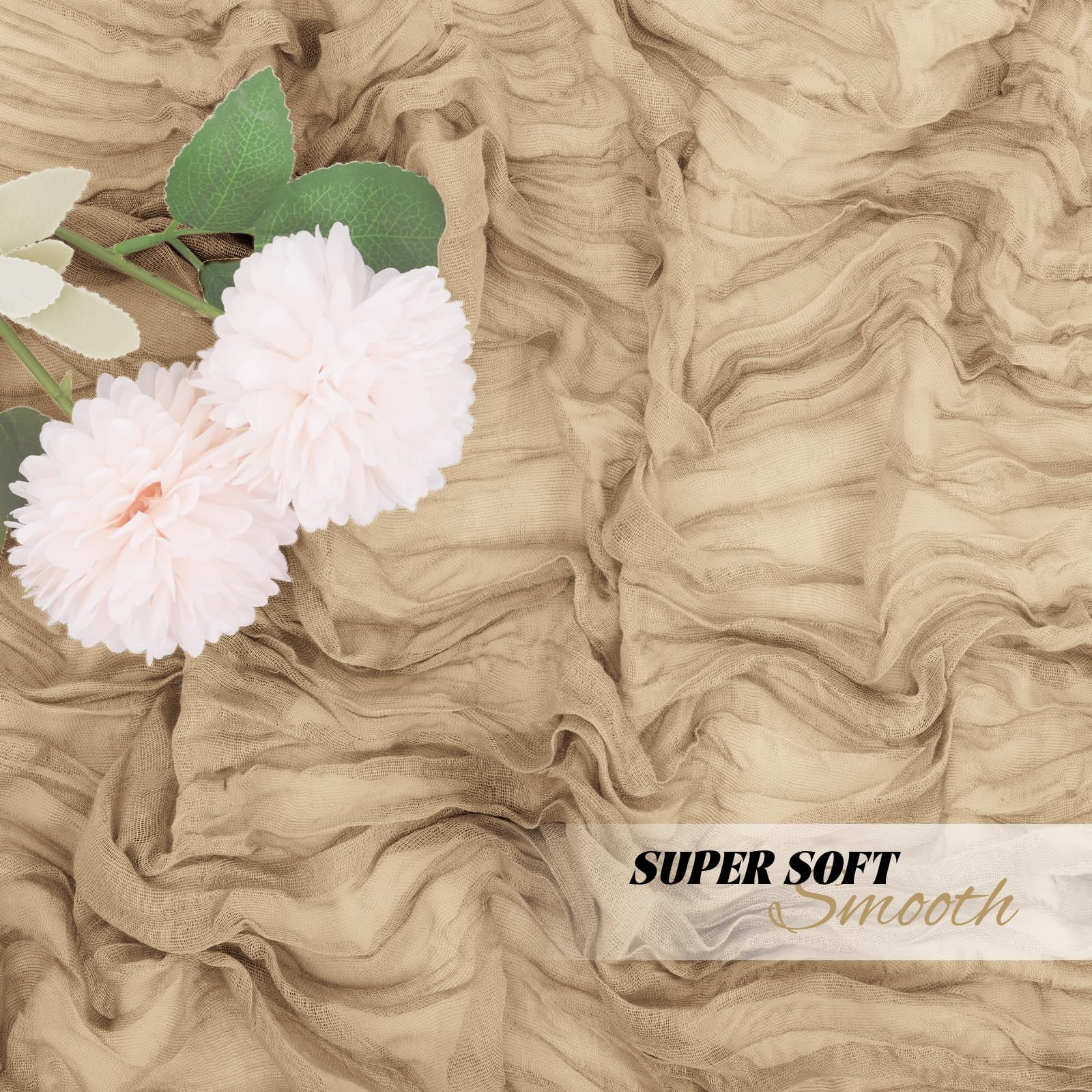 - Premium Material: Our cheese cloth table runners are made from premium gauze table runner and crinkle gauze fabric. The beige table runner with beautiful wrinkles, soft to the touch, reusable, washable and fade-resistant. This boho gauze table runner is translucent and drapes naturally, perfectly and elegantly placed on a table or hung from the floor