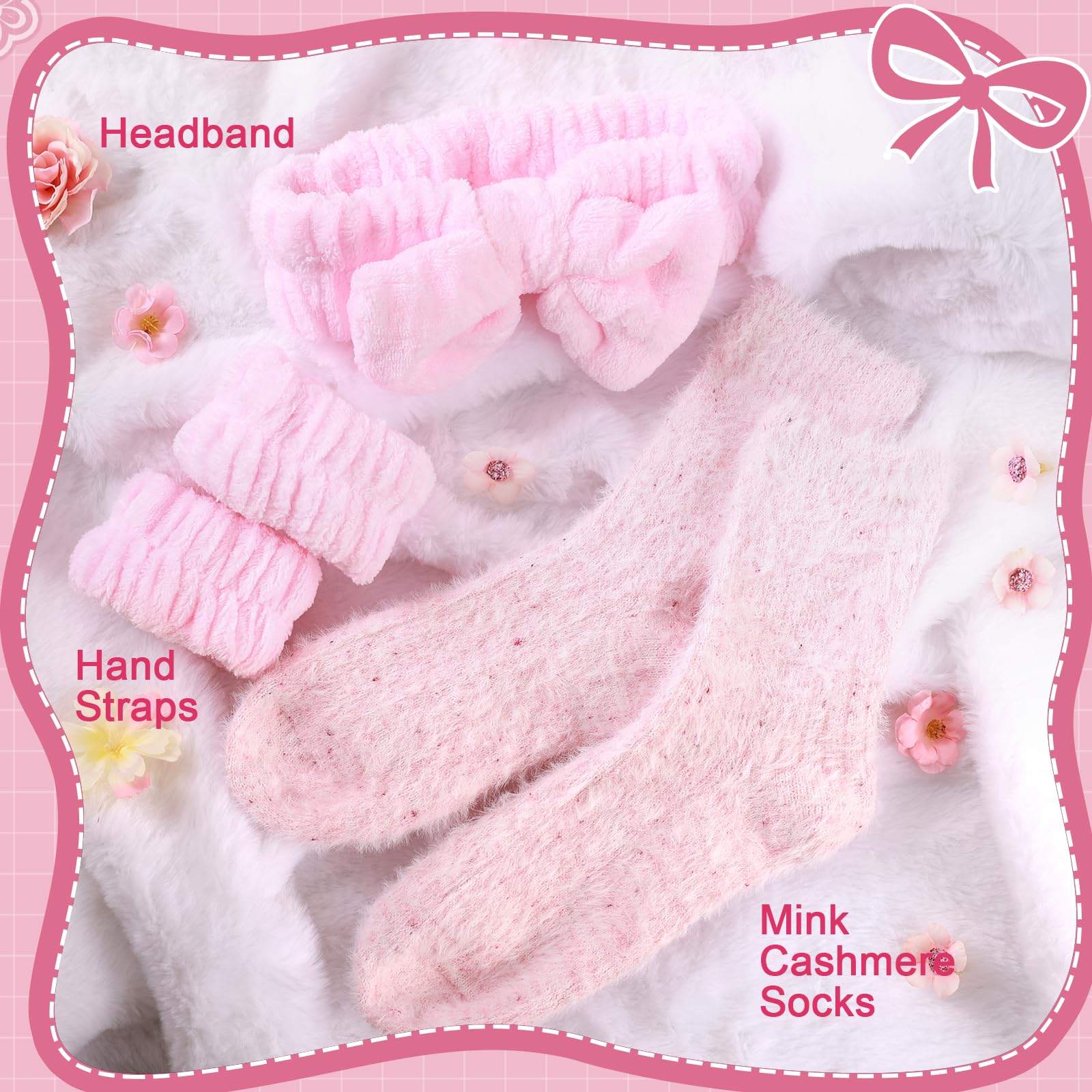 - Luxury Self Care Package for Her. Includes 8 thoughtful items: premium insulated tumbler, fuzzy socks, rose handmade soap, heart-shaped bath bomb, scented candle, headband, mirror & thank you card.