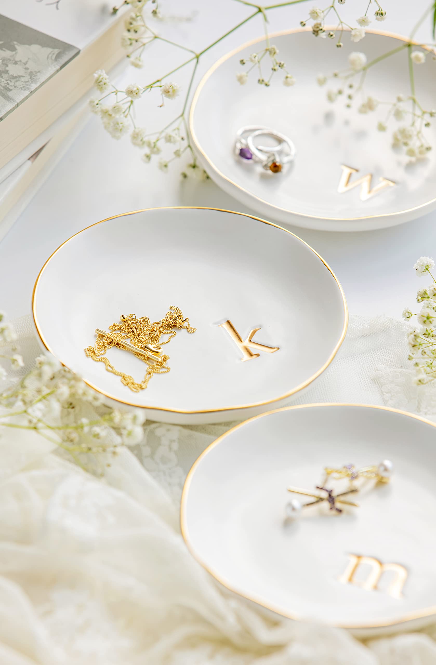 - 【Dimensions】: This monogrammed ceramic jewelry dish measures 4.75 x 4.75 inches