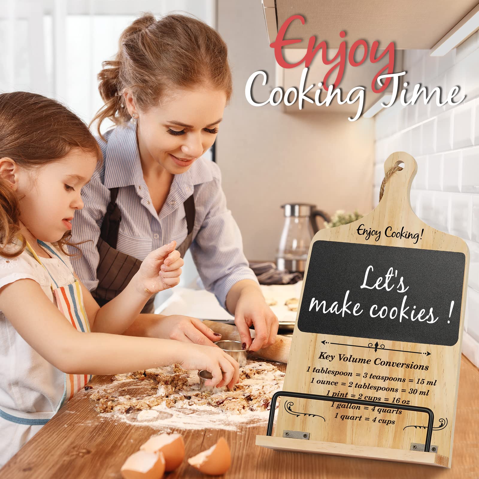 - Perfect Recipe Holder: Enhance your baking with this stylish cookbook stand, and the ideal family decor for organizing recipe. Its versatile use makes it a standout in kitchen must-have.Features a handy chalkboard and conversion chart for quick reference