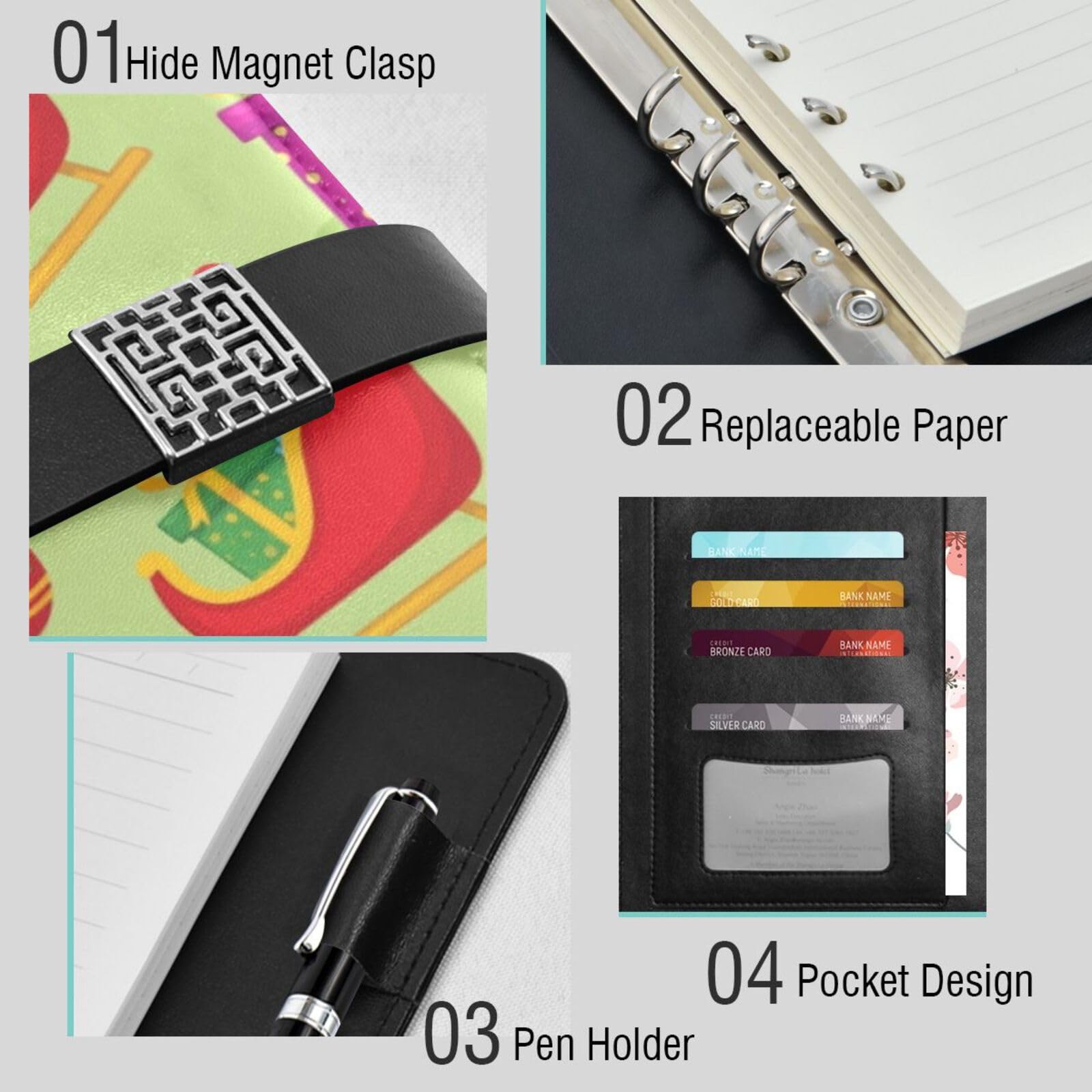 DIGTIA Christmas Gifts Santa Sleighs PU Leather Notebook A5 Binder 6 Ring Refillable Journal with Magnetic Buckle Closure Loose Leaf Travel Office Planner Budget Binder Notepad Portfolio,