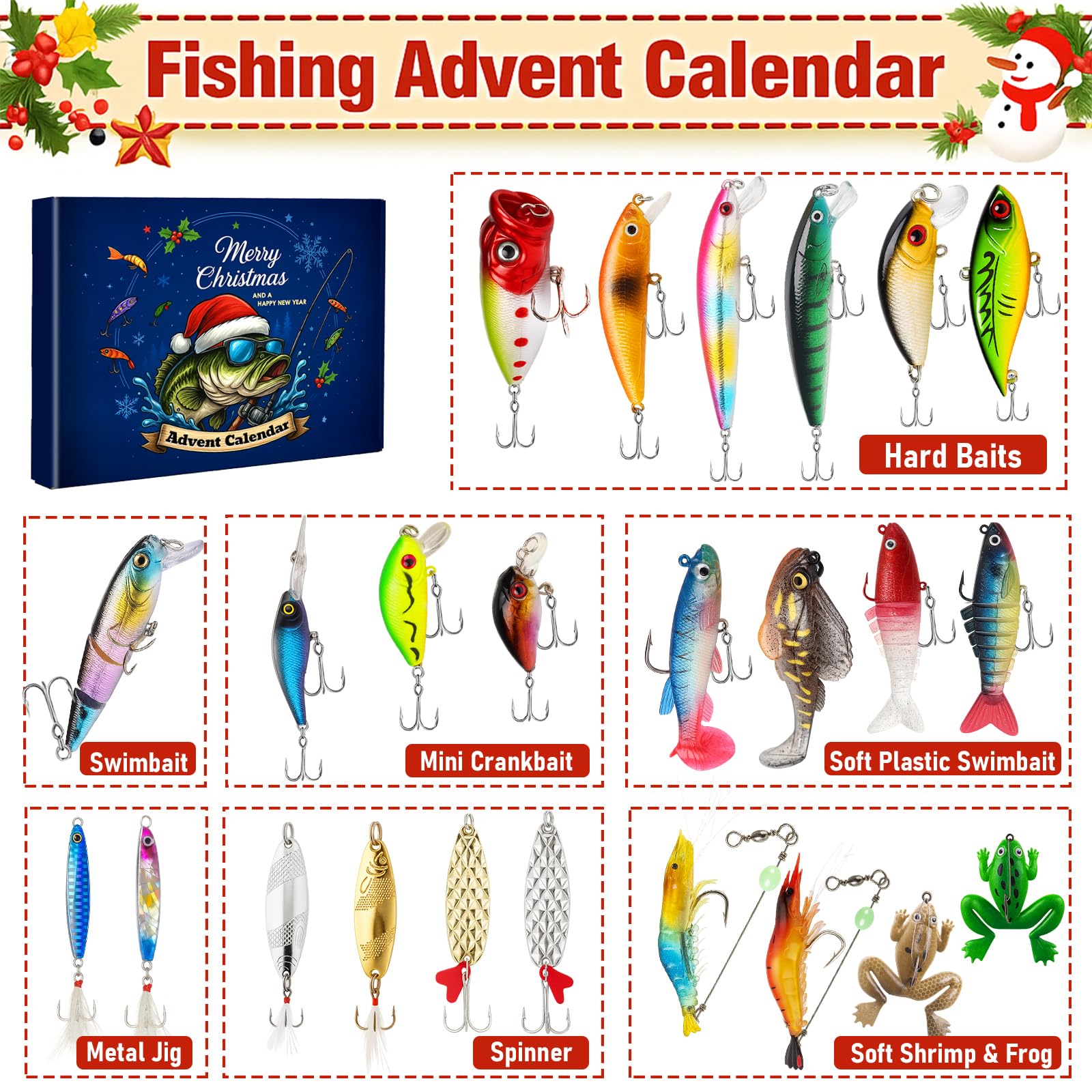 - Refined Holiday Countdown: Celebrate the season with a calendar that blends timeless tradition with outdoor adventure. Behind each of the 24 numbered boxes awaits a premium fishing lure—expertly chosen to surprise, delight, and elevate the angler’s journey, one day at a time.