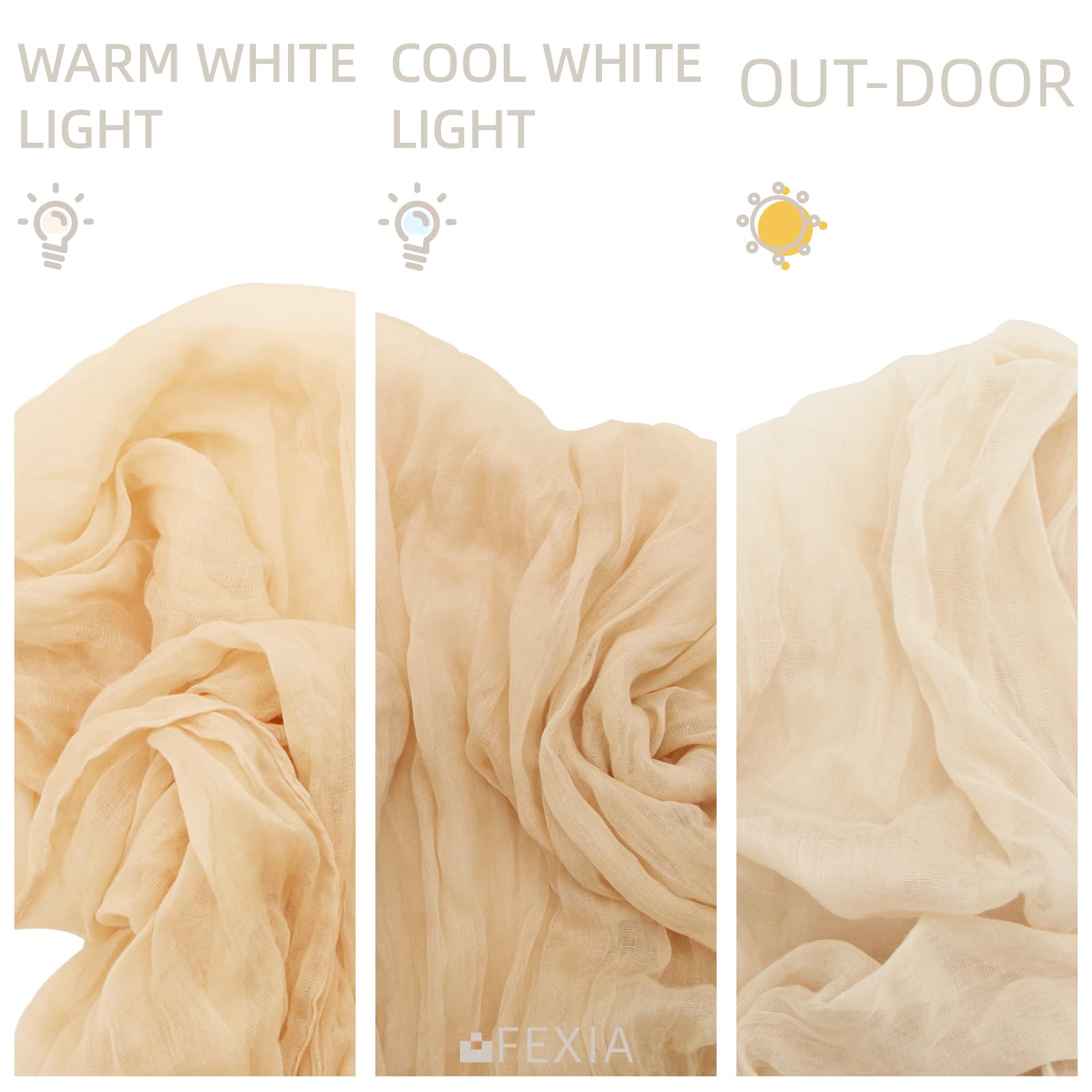 - [Soft Material] Beige cheesecloth table runner is made of high quality polyester, soft to the touch and the cheesecloth fabric make the table runner sheer enough to sway in the wind. It is completely wrinkle free and not easy to fade, not shrink thus reusable.