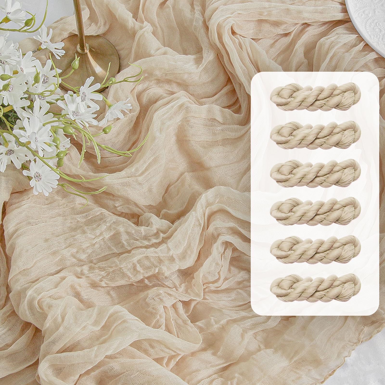 - [Package] You will get 6 Pcs, 35W'x120'L(10FT) beige cheesecloth table runner. Each 10FT long is perfect for 3-4FT long table.