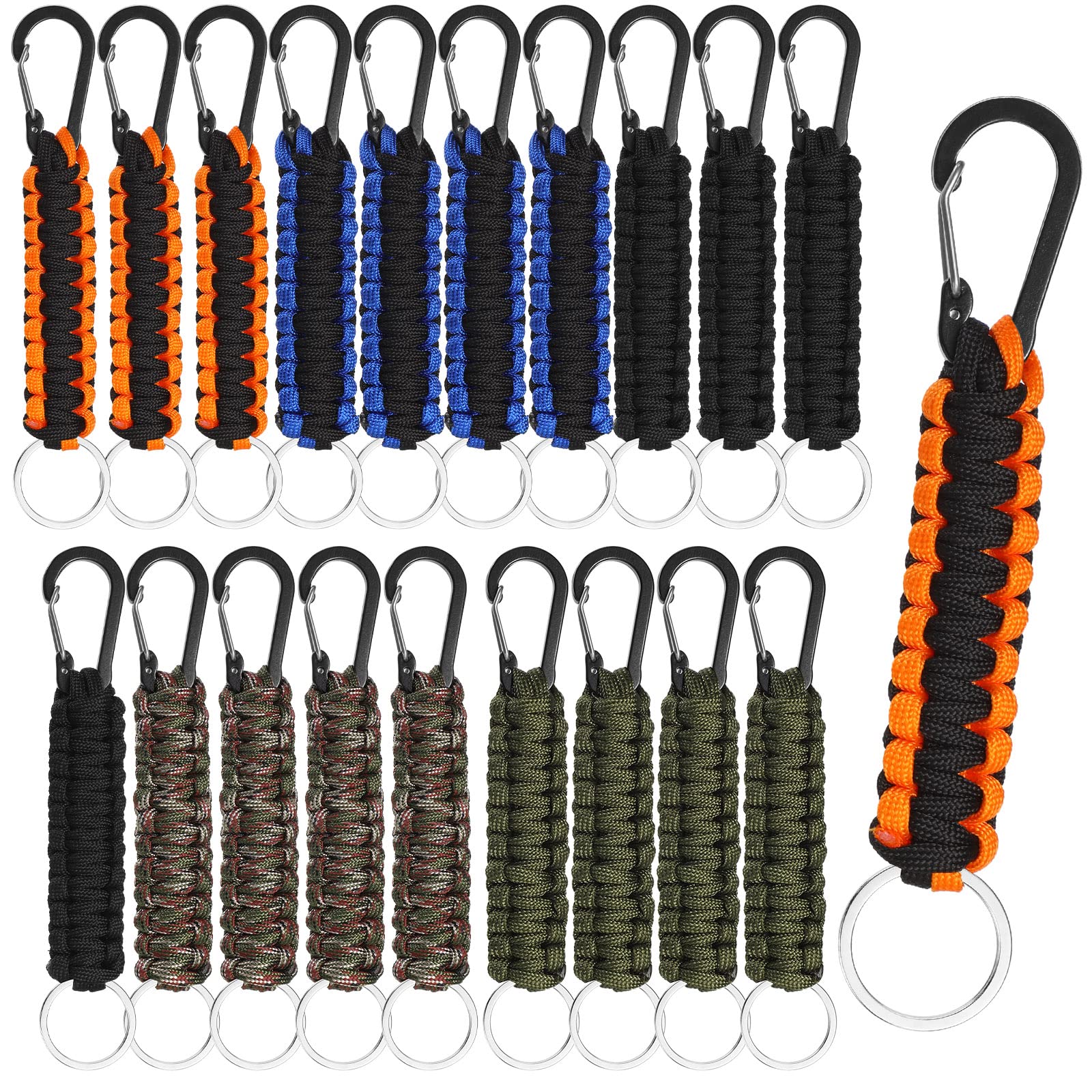 Fumete 20 Pcs Paracord Keychain Military Braided Keychain Clip with Strap Paracord Backpack Strap with Chain Hooks for Women Men Camping Fishing Hiking Backpacking Keys Hanger, 5 Styles