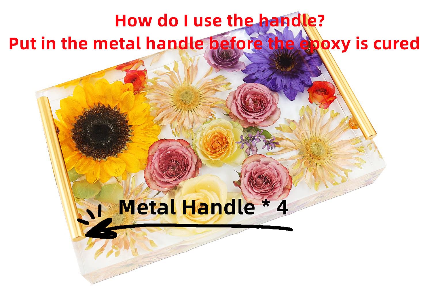 - 【Large Tray Resin Mold】Package includes 1 large rectangular mold, 4 metal handles (gold and silver), enough for your DIY shiny resin coaster and tray crafts.