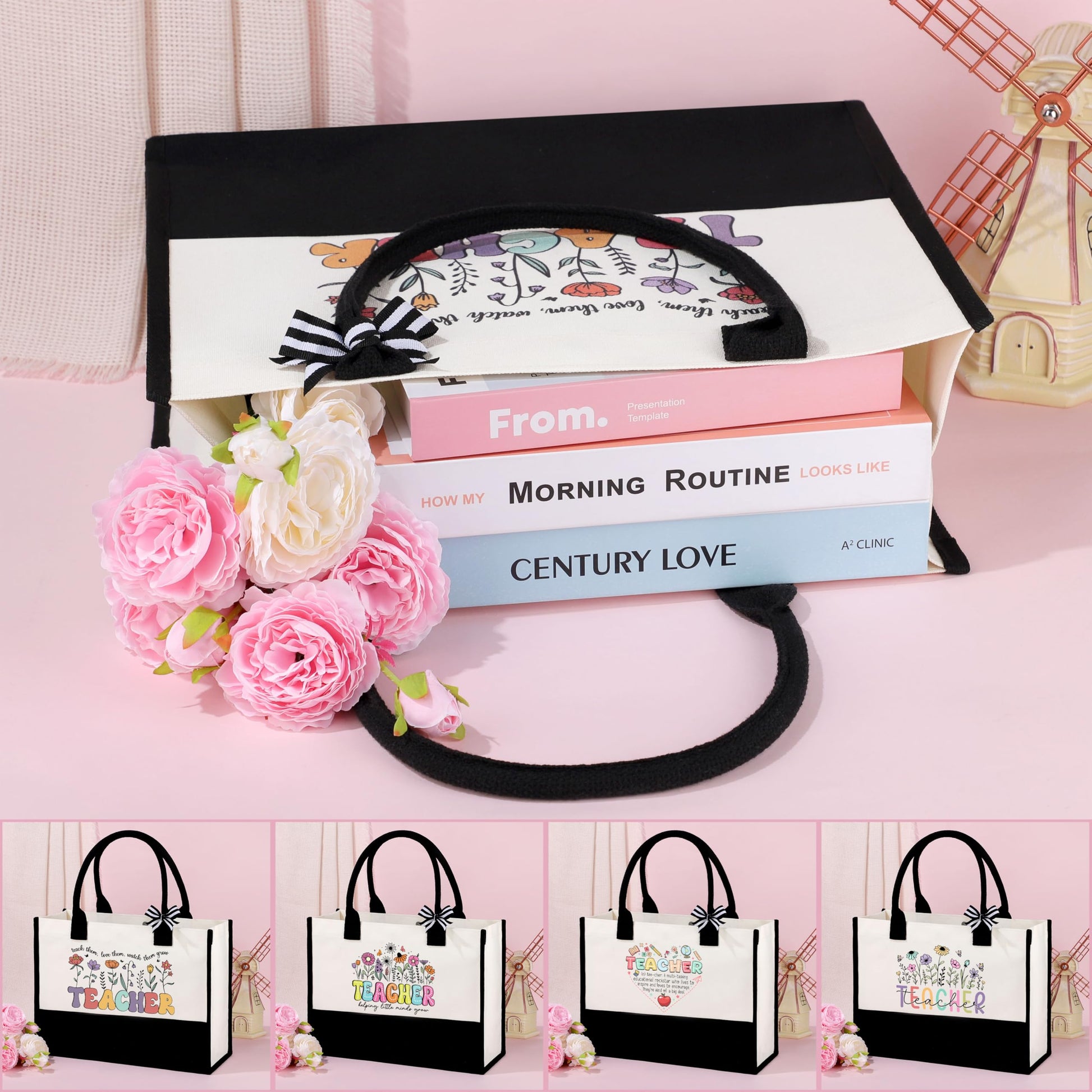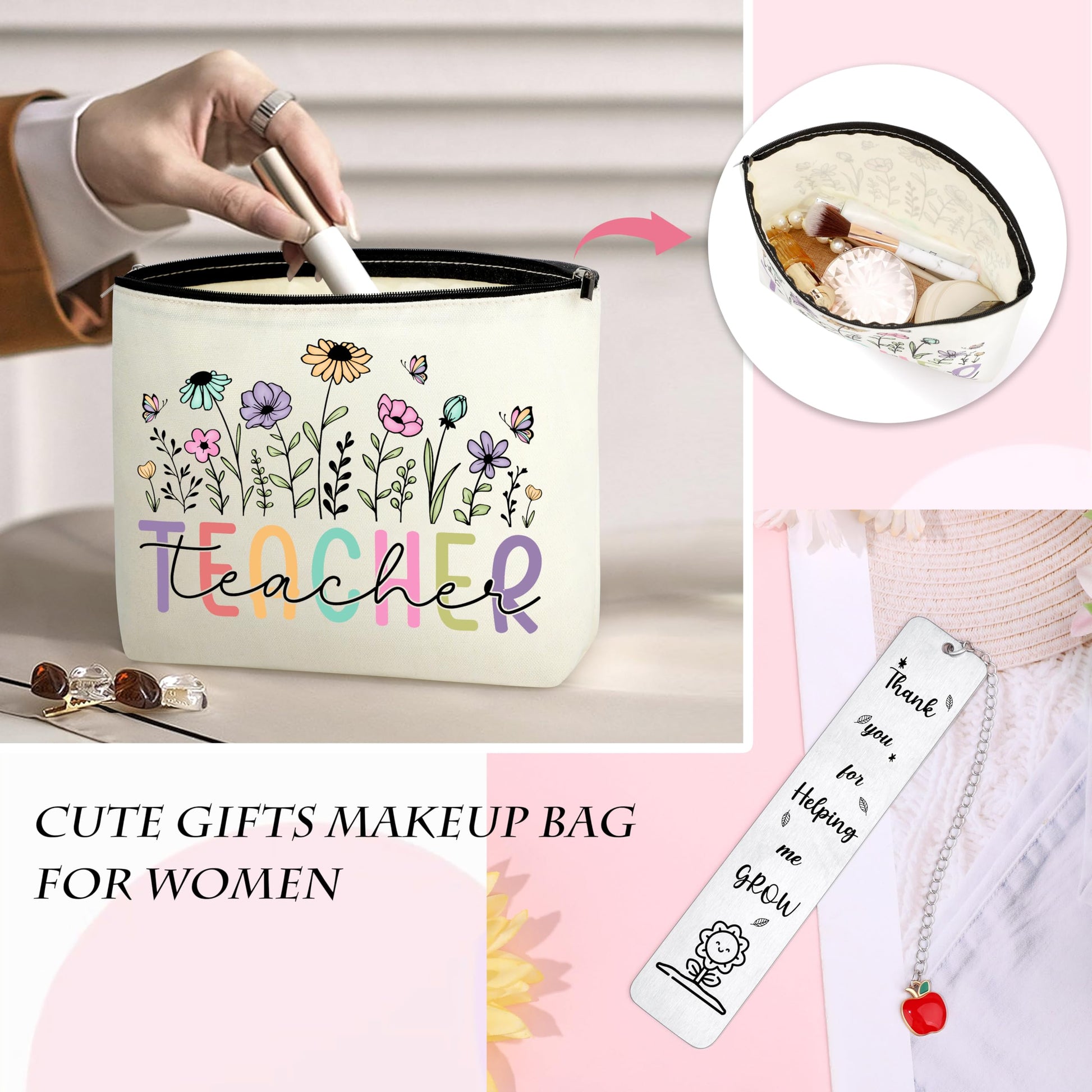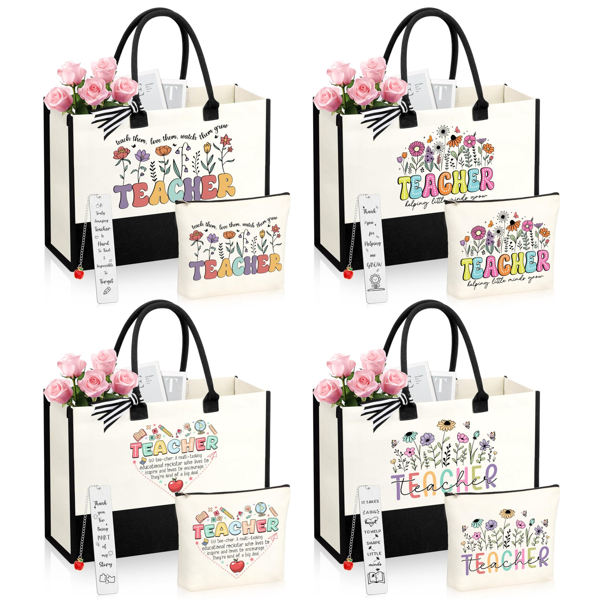 - Teacher Gifts for Women:A beautifully designed gratitude gift box specially created for educators, containing 4 sets of differently matched practical combinations. Each set includes a large capacity tote bag, a portable makeup bag, and a bookmark. These can be given to four teachers. It covers everything from lesson preparation and office work to daily commuting, allowing each teacher to receive a personalized gift that combines practicality and a sense of ceremony.