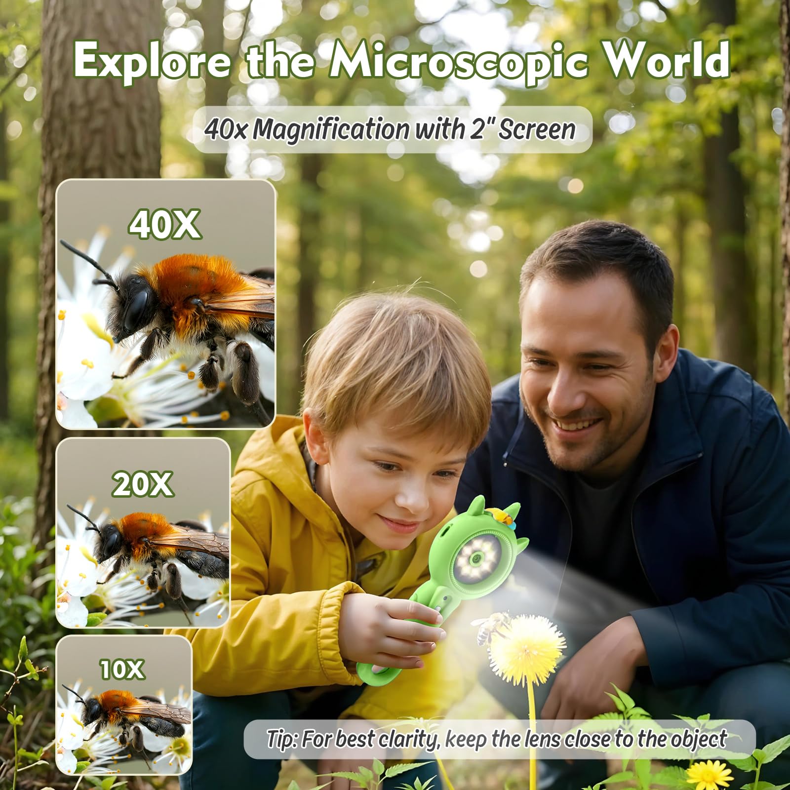 - Portable & Kid-Friendly Design – Science on the go! This pocket-sized, lightweight microscope is perfect for little hands. No tricky parts or wires – just grab and go for backyard adventures or school science class. A true hand held microscope for kids who love discovering the world around them