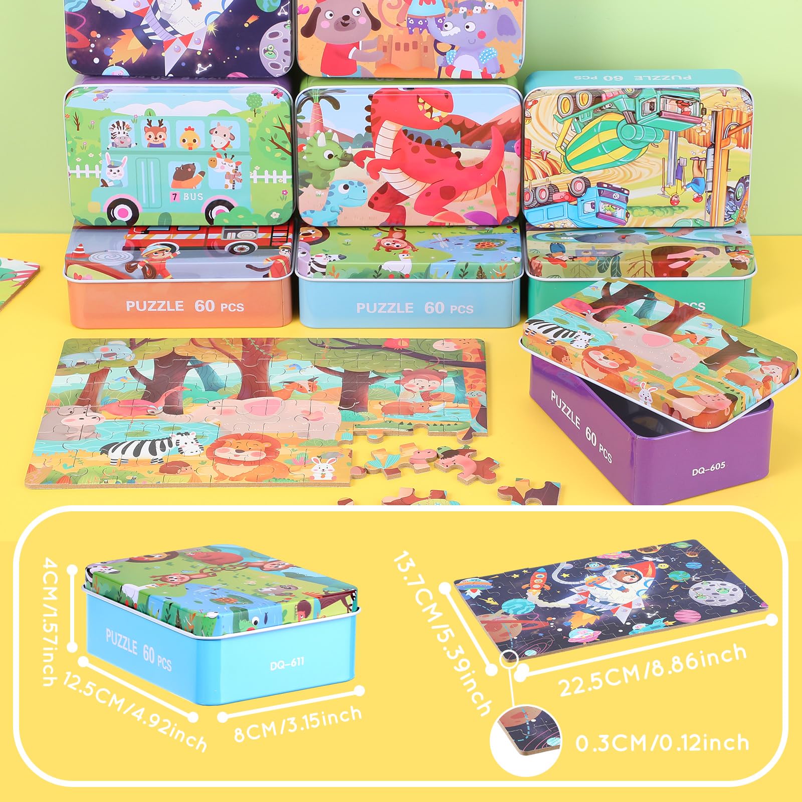 - Package Quantity: you will receive 9 boxes of puzzles, each puzzle has a different style, each box of puzzles has 60 small wooden puzzles, enough for your boys and girls to play for a long time, the puzzles are in iron boxes, suitable for storage, is a nice educational toy
