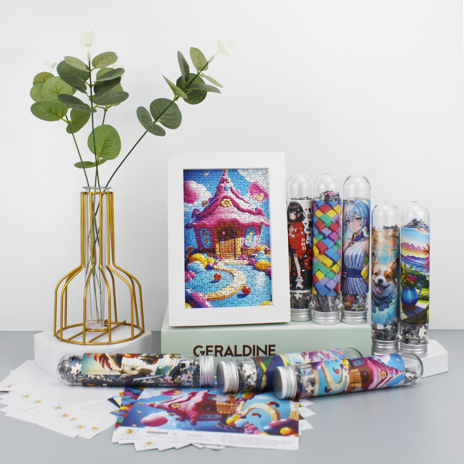 - Ultra Portable Design: This puzzles for adults are stored in a sturdy plastic test tube.Small size is easy to carry and you can enjoy the joy of small puzzles anywhere.Each product contains 8 double-sided mini test tube puzzles, the size of the puzzle completed 15 x 10 cm (6 x 4 inches).
