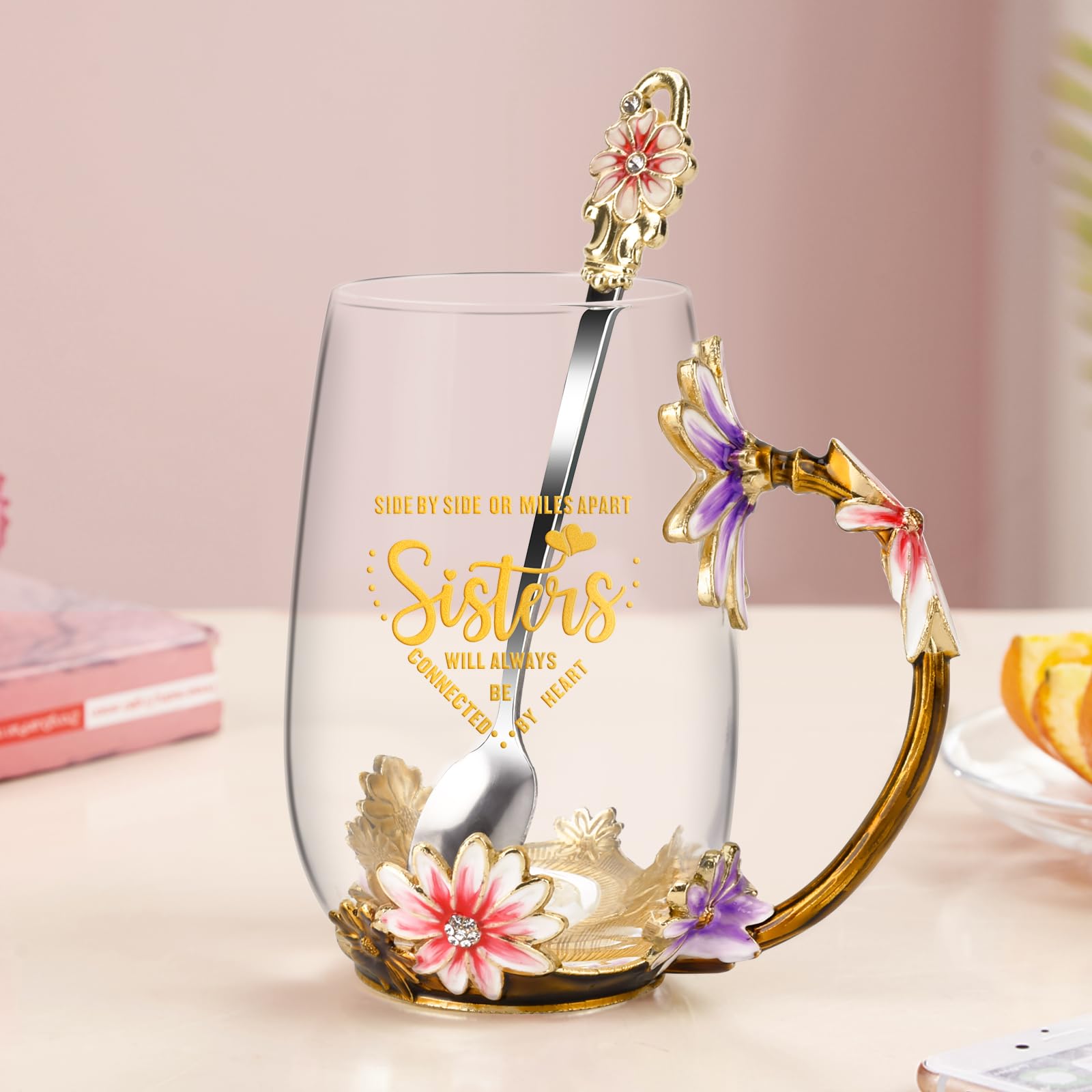 - The Perfect Gifts: Our glass mug look elegant and novel,and is the best sisters gifts for women.It is the perfect gift for your sister, little, big sister, sister in law on birthday, Christmas.