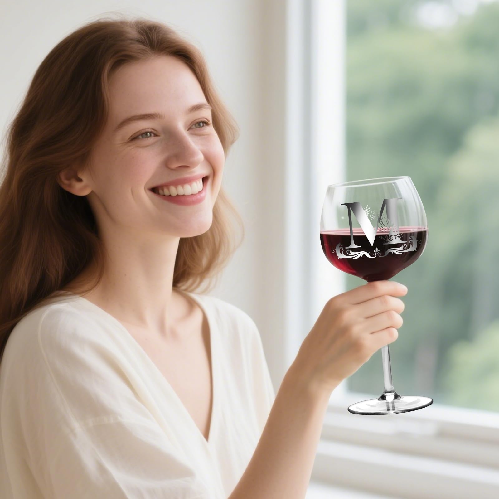 Personalized Monogram Gifts for Women - Customized Initial A-Z Wine Glass, Unique Birthday Christmas Gifts for Her, Mom, Wife, Sister, Daughter, Friend (Letter M)