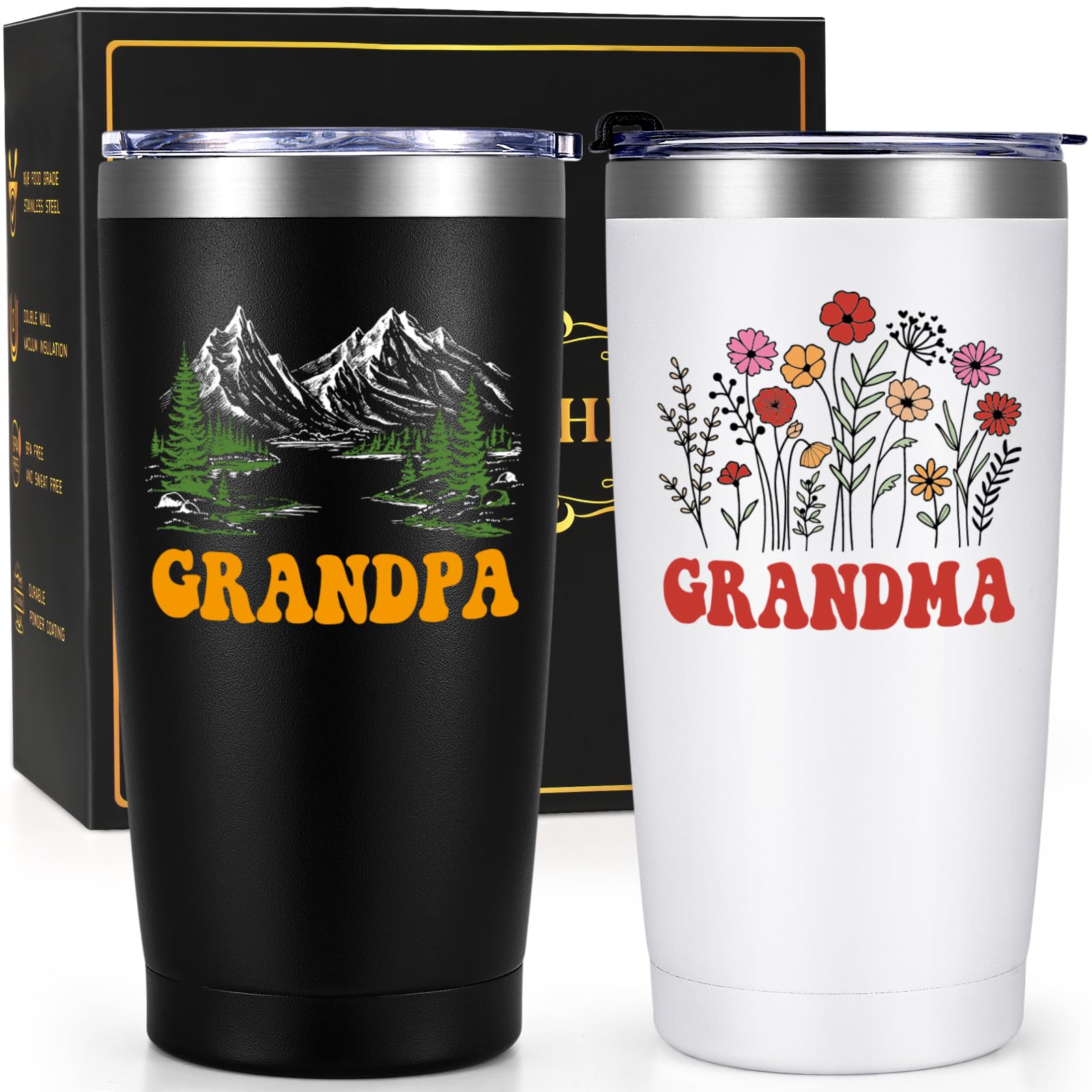 - SUITABLE FOR MANY OCCASIONS: This 20 OZ Grandpa and Grandma travel tumbler set is ideal for champagne, juices, cocktails, wine, coffee, soda, whiskey and more. Suitable for traveling, hiking, boating, fishing, camping, BBQ and daily use. Whether you are indoors or outdoors, this gifts for grandparents ideas travel tumbler will satisfy you.