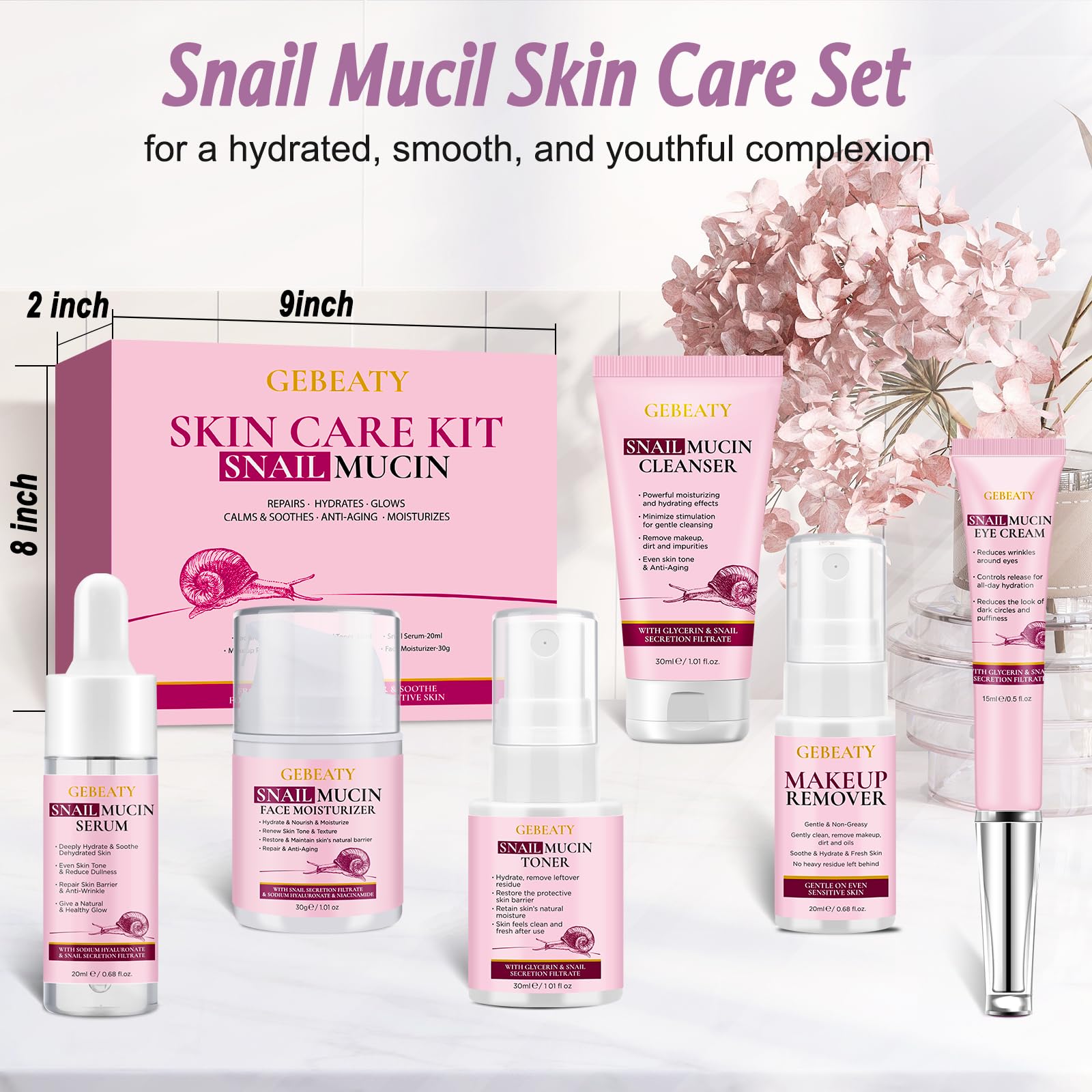 - Hydrating & Repairing & Soothing: This skin care set includes snail mucin toner,serum,eye cream, moisturizer,all working together to promote hydration,soothe dehydrated skin,repair damage,lift & firm face and neck skin for less fine lines & wrinkles,Enjoy a clear,smooth skin with snail mucin sourced from Korea