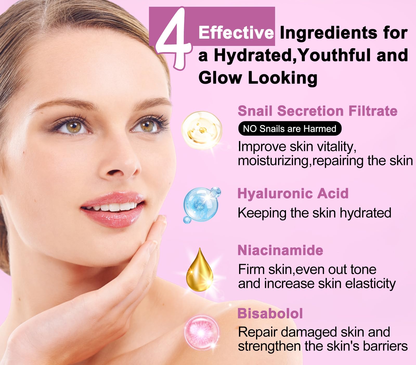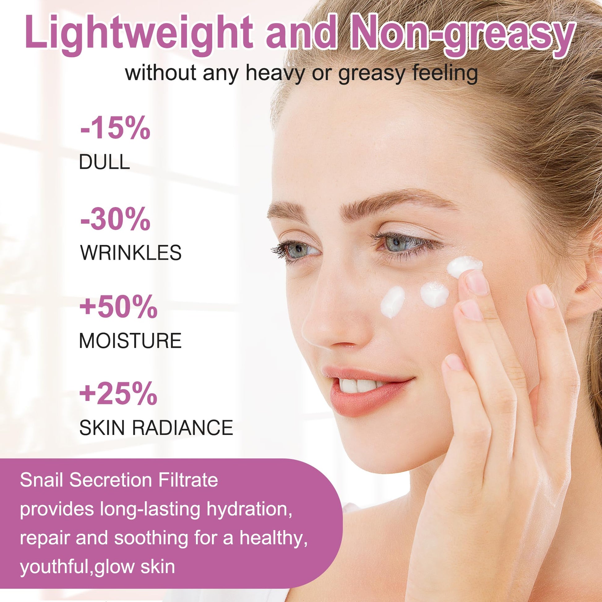 - Lightweight and Non-greasy: Our facial skin care products absorb quickly to get long-lasting hydration,repair and soothing skin.Enjoy a healthy glow without any heavy or greasy feeling.Snail Mucin is obtained in a friendly way.NO Snails are Harmed