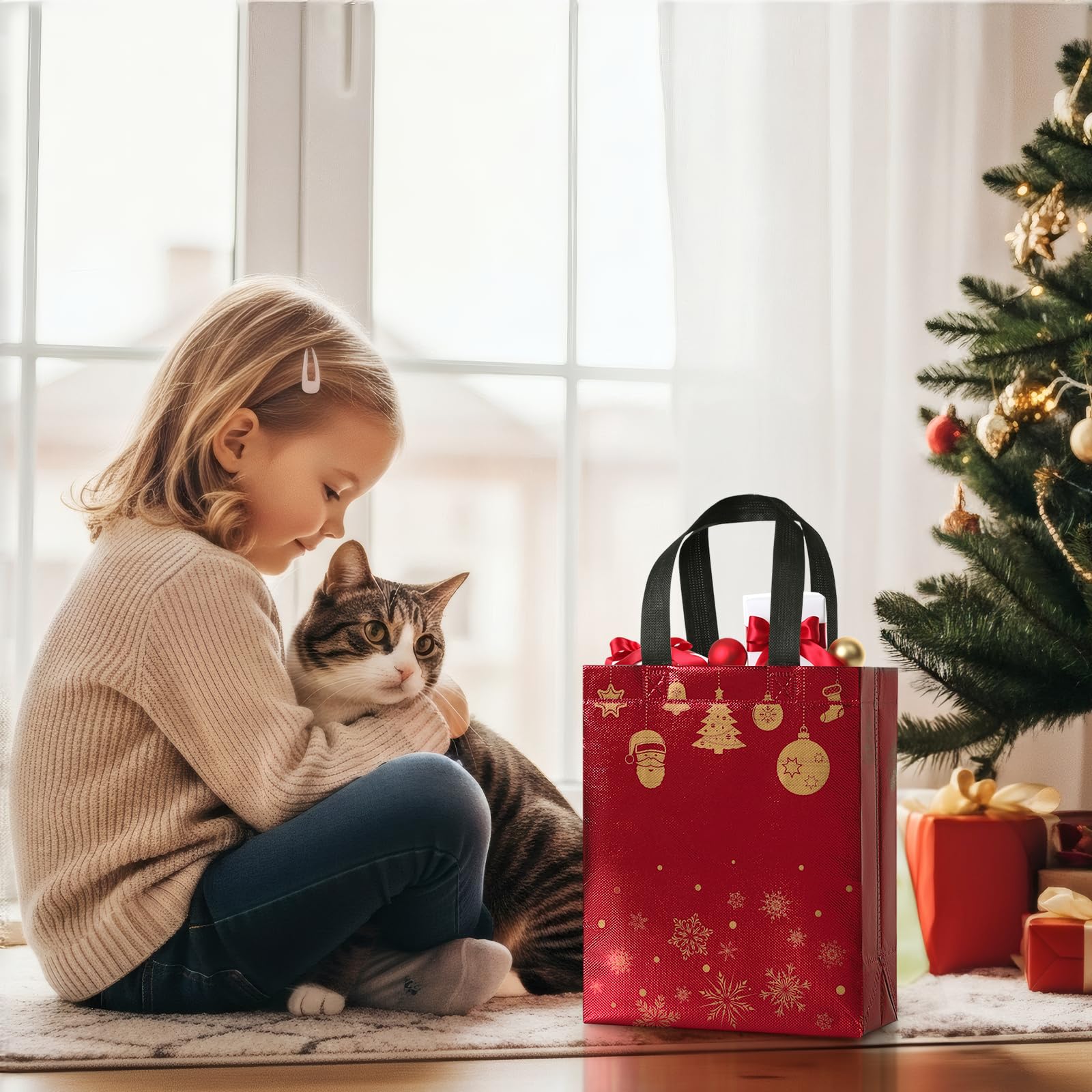 - 𝐅𝐞𝐬𝐭𝐢𝐯𝐞 𝐃𝐞𝐬𝐢𝐠𝐧𝐬: Each style of tote bag in the set boasts a unique Christmas-themed pattern, offering a variety of choices for your holiday gift wrapping. The reflective surface of the bags adds a dazzling touch to the festive color palette, making your presents stand out under the tree.