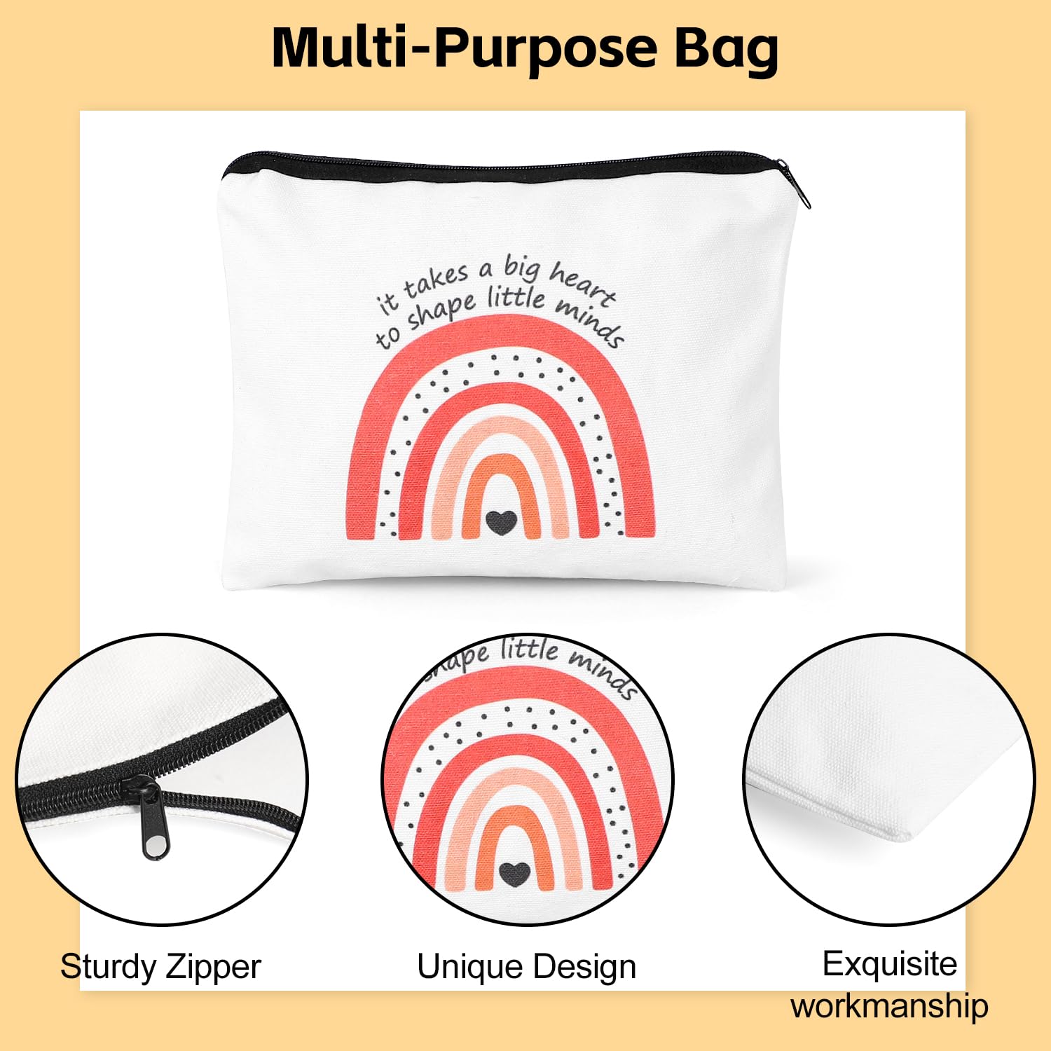 - Teacher Themed Cosmetic Bag:This cosmetic bag measuring about 9inch*7inch is made of high quality cotton and canvas, and the zipper design ensures that the items inside will not fall out. This bag can be used as a makeup bag,pencil case,easy to hold pencils, toiletries, cosmetics and any other small items you want to put in your daily life
