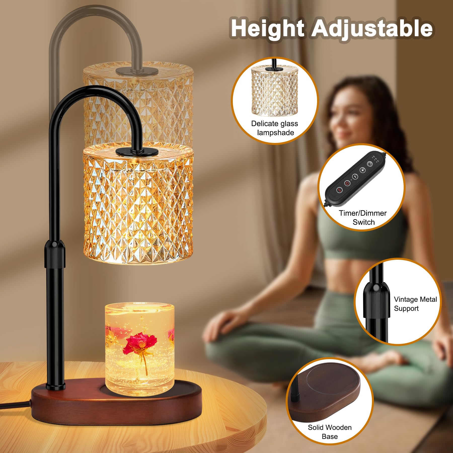 ZENLEA Candle Warmer Lamp with Timer, Wax Melt Warmer with Timer and Dimmer, Adjustable Height Lamp Candle Warmer for Jar Candles, House Warming Gift for Women & Mom, Ideal Christmas Gift